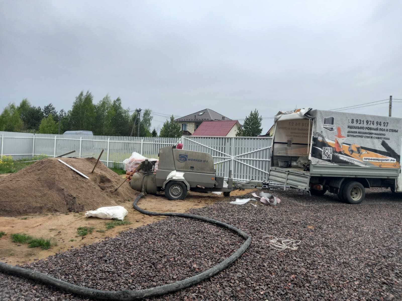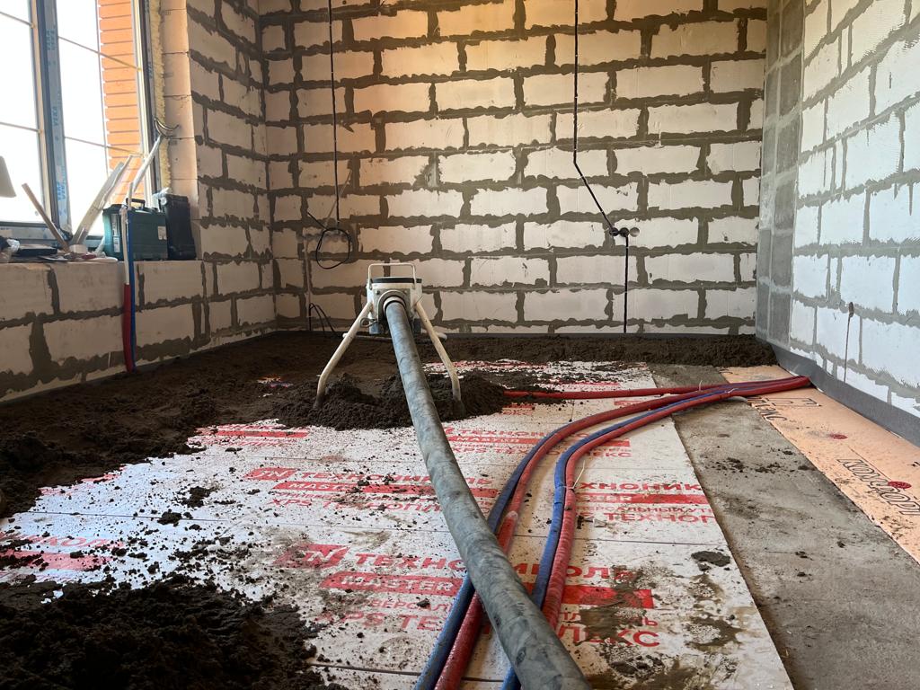 Механизированная, полусухая стяжка пола, загородных домов и офисов